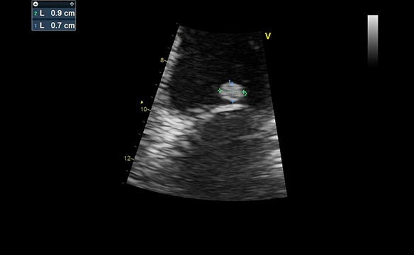 ECO DOPPLER y ETE, equipo Phillips 3D (Dra. Barr y Tec. En imágenes Lucia Vacas): imagen en Valva Mitral redondeada de 0.8 mm, muy móvil, sin compromiso de ecoestructura Mitral luego fue evaluado en consulta con Dr. Avegliano, confirmando la sospecha de que por las características de dicha masa puede corresponder a Fibroelastoma Papilifero. Dada la alta incidencia de embolia, se envía a Cirugía Cardiovascular.